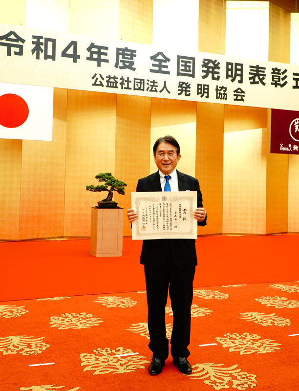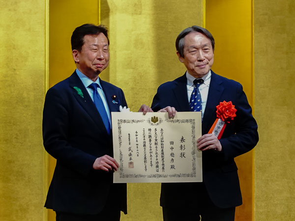 「令和7年度知財功労賞 経済産業大臣表彰」に熊本県発明協会 会長 田中 稔彦氏(金剛株式会社 代表取締役社長)が決定しました。令和7年4月18日発明の日にちなみ、赤坂インターシティコンファレンスにて、石破総理、大串経済産業副大臣ご臨席の元授賞式が執り行なわれました。