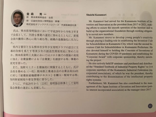 (前 熊本県発明協会会長、 前(公社)発明協会 監事