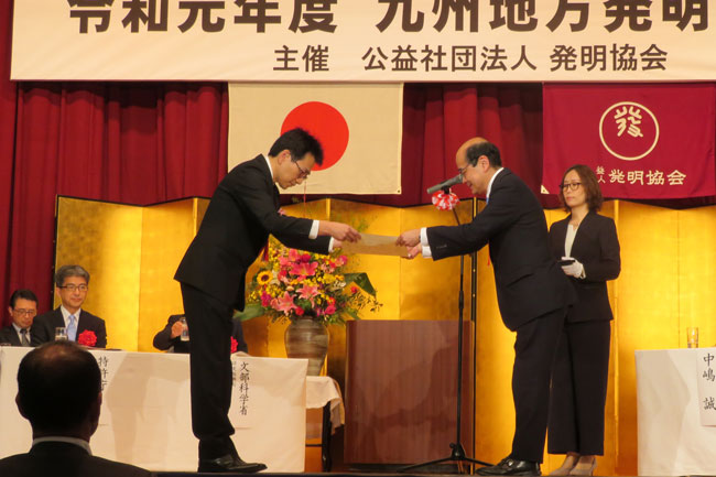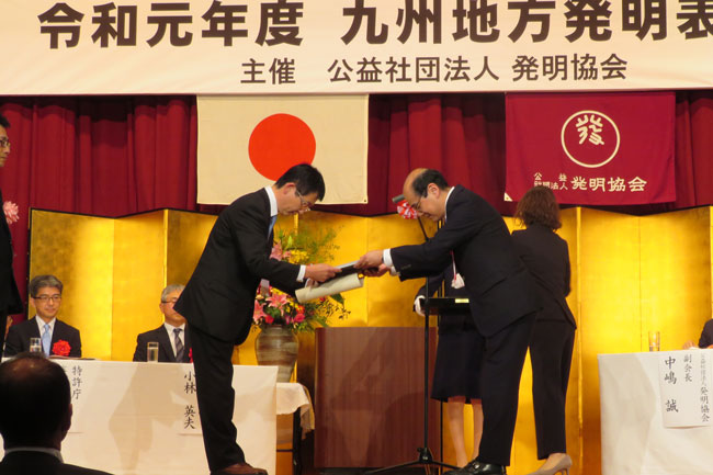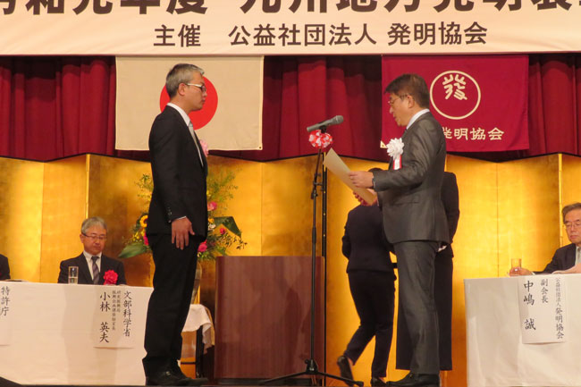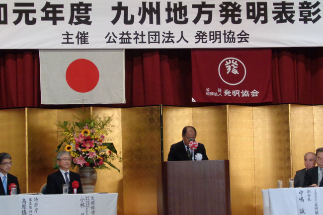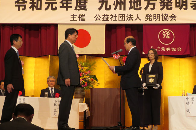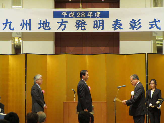 11月2日(水)佐賀市グランデはがくれにて、文部科学省、特許庁、九州経済産業局はじめ、九州各県よりご臨席賜り表彰式が粛々と挙行されました。地域経済の発展や振興に尽力し、地域において優れた発明・特許を完成された方、発明の実施化、奨励、指導、育成に貢献された方々の功績を称え、表彰するものです。